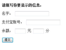 输入名字、支付宝账号和你想显示的金额就能生成一个支付宝余额显示页面